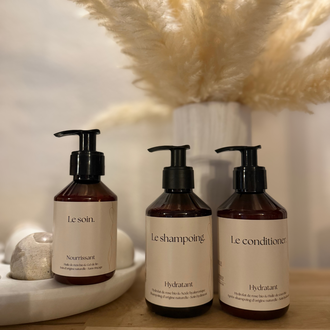 Ce trio combine des soins hautement concentrés en actifs naturels pour nettoyer en douceur, hydrater intensément et nourrir profondément, tout en préservant l'équilibre du cuir chevelu.